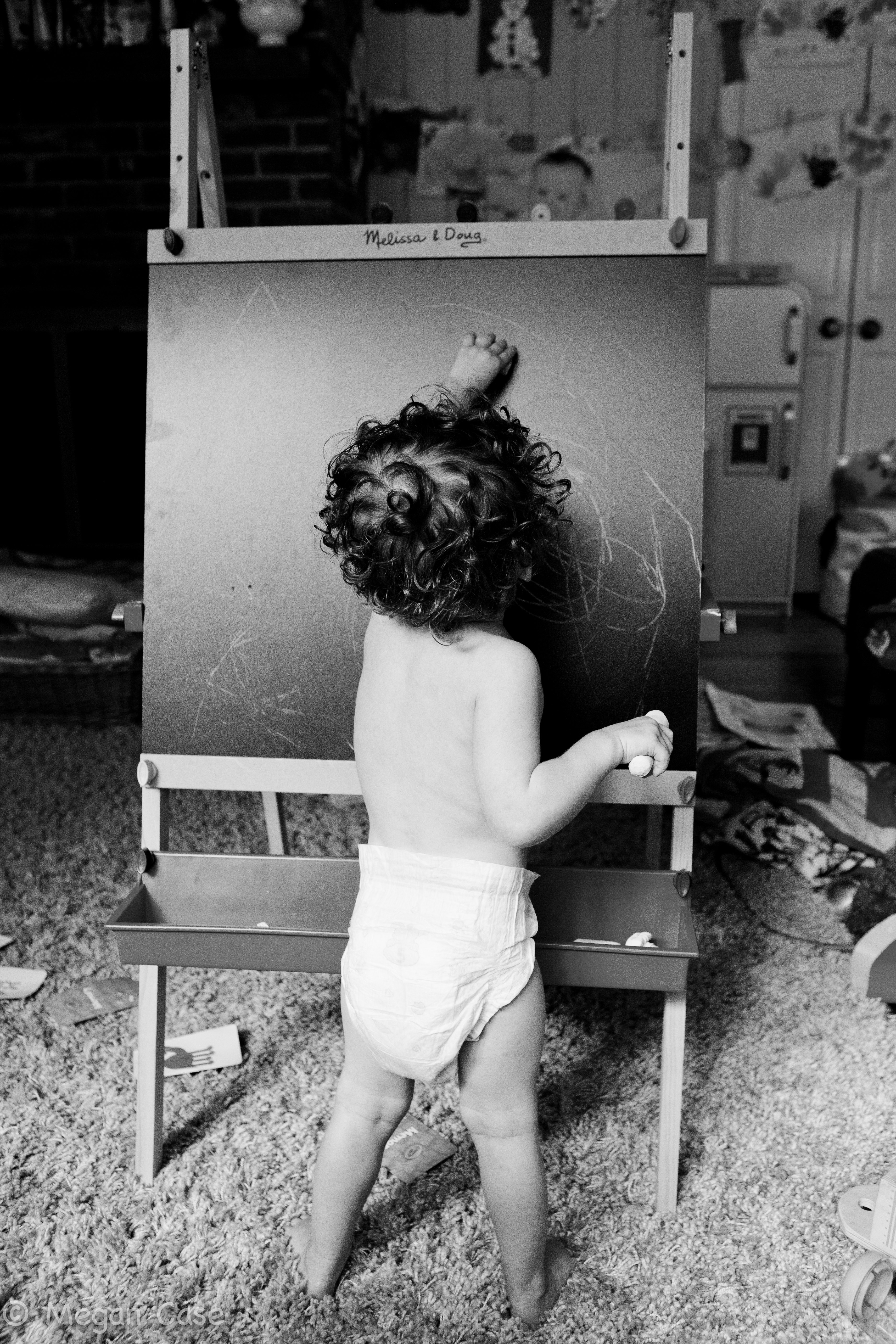 Cody, you were so focused on your drawing that your feet gave you away. First, you tried to climb into your drawing…