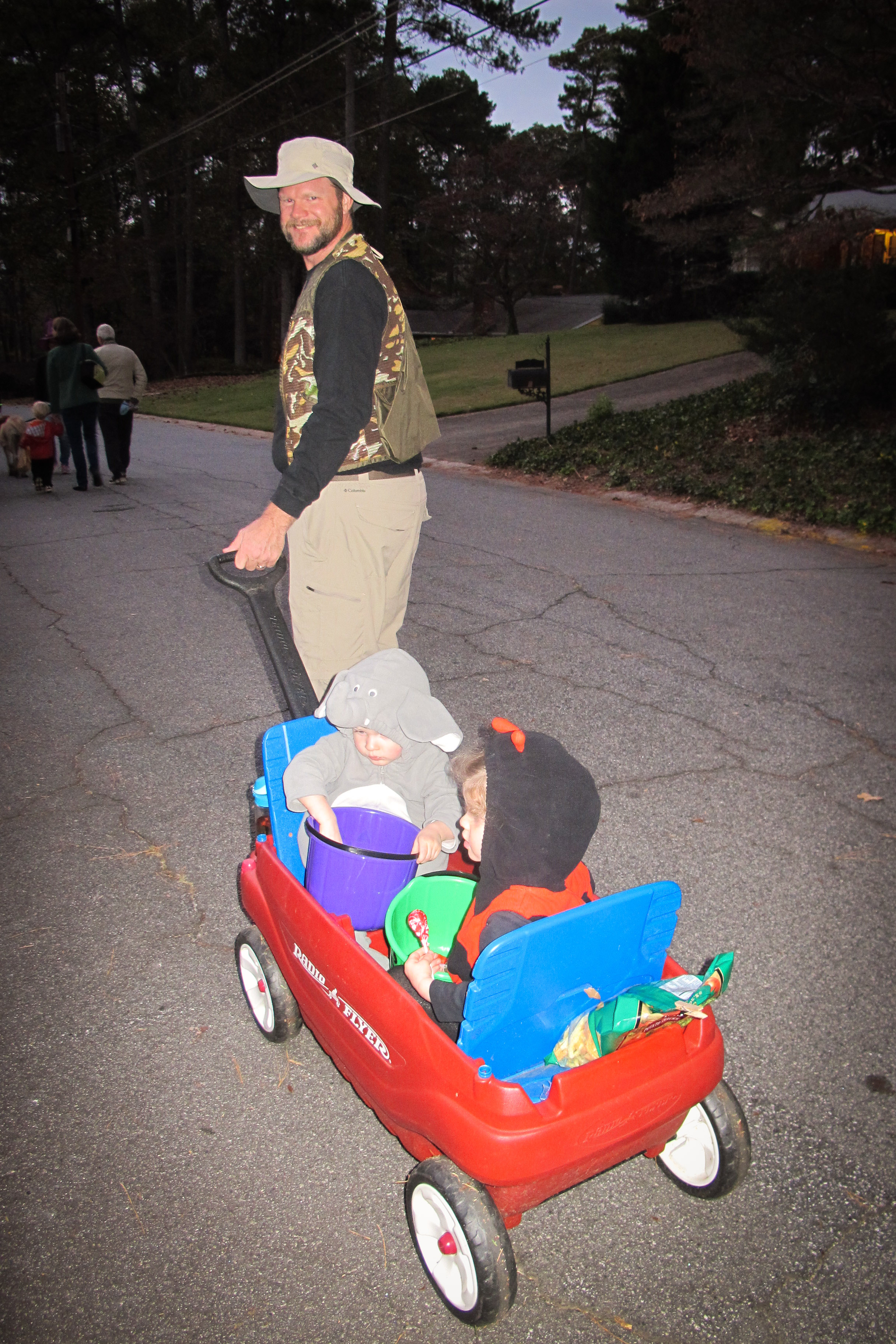 Papa tried to wear the Fire Chief outfit, but it was a little small for him…