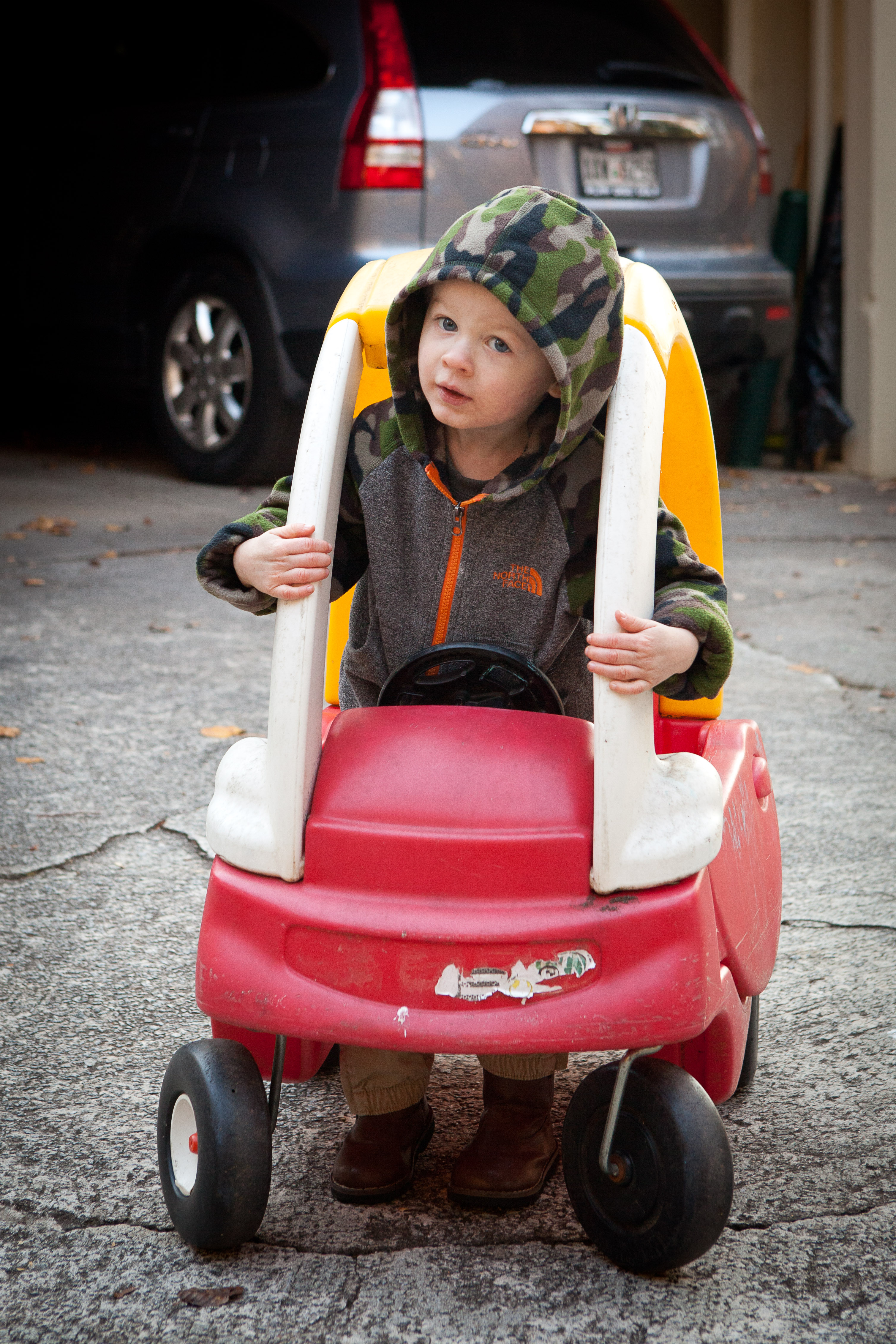 Cody hitched a ride with Dada on one of the big kid scooters…